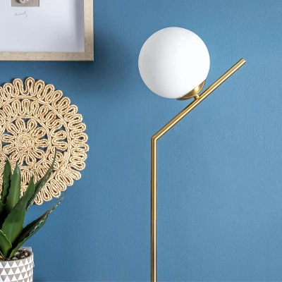 Illuminate any area in your bedroom, living room, and beyond with this Scandinavian floor lamp from nuLOOM. A glass sphere tops the lamp and diffuses the perfect amount of lighting. This beautiful lamp adds flair to any setting – whether it’s in your bedroom, living room, or the common area!