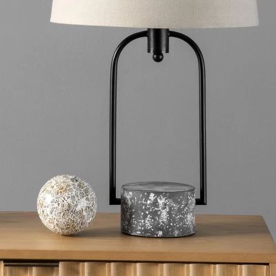Enrich the look of any tabletop with this beautifully crafted industrial table lamp. The 20-inch tall column shaped base will fit easily onto your table, desk, or nightstand. A simple fabric empire shade pops on the top of this lamp easily, creating a balanced look with diffused light. A rug pad is recommended to prevent slipping.