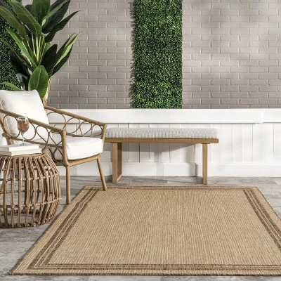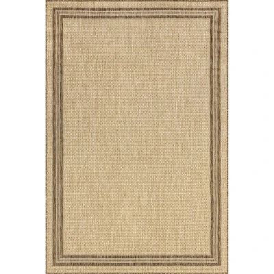 Soft color, classic design and versatility is now yours with this beautiful machine-made indoor/outdoor rug. Crafted using durable synthetic materials, this rug cushions your feet for ultimate comfort, and can create the perfect ambiance whether you decide to use these indoor or outdoor. A neutral color scheme with a class border makes this the ideal rug that pairs with any of your existing decor. Enjoy your time at home with our pet-friendly and easy to clean area rugs.
