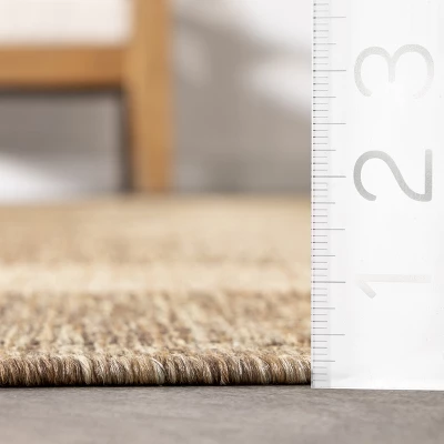 Step into your new place with a fresh look and a versatile transitional indoor/outdoor rug. This floor piece features a unique pattern in warm and inviting tones that blend effortlessly with your existing decor. The unmistakable elegance of a piece like this helps take your space from boring to complete. Whether you choose to use these indoor/outdoor, they will surely transport you to a serene oasis. With our wide selection of sizes, make the most out of your time at home with our pet-friendly and easy to clean area rugs.
